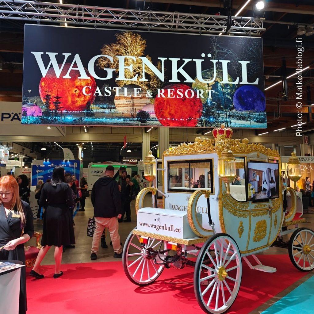 Tämän vuoden iloinen yllättäjä ja kohde, jota en tuntenut ennestään oli Wagenküll – todella mielenkiintoisen tuntuinen linnakohde Etelä-Virossa. Heidän kultaiset vaunut tuskin jäivät keneltäkään huomaamatta – hyvä esimerkki siitä, miten tärkeää on, että messuosastolla on jokin katseenvangitsija ja huomion herättäjä. Kun tähän vielä lisätään helposti lähestyttävä ja tuotteestaan innostunut osastohenkilökunta uskaltaisin sanoa, että messuosallistuminen oli napakymppi.
